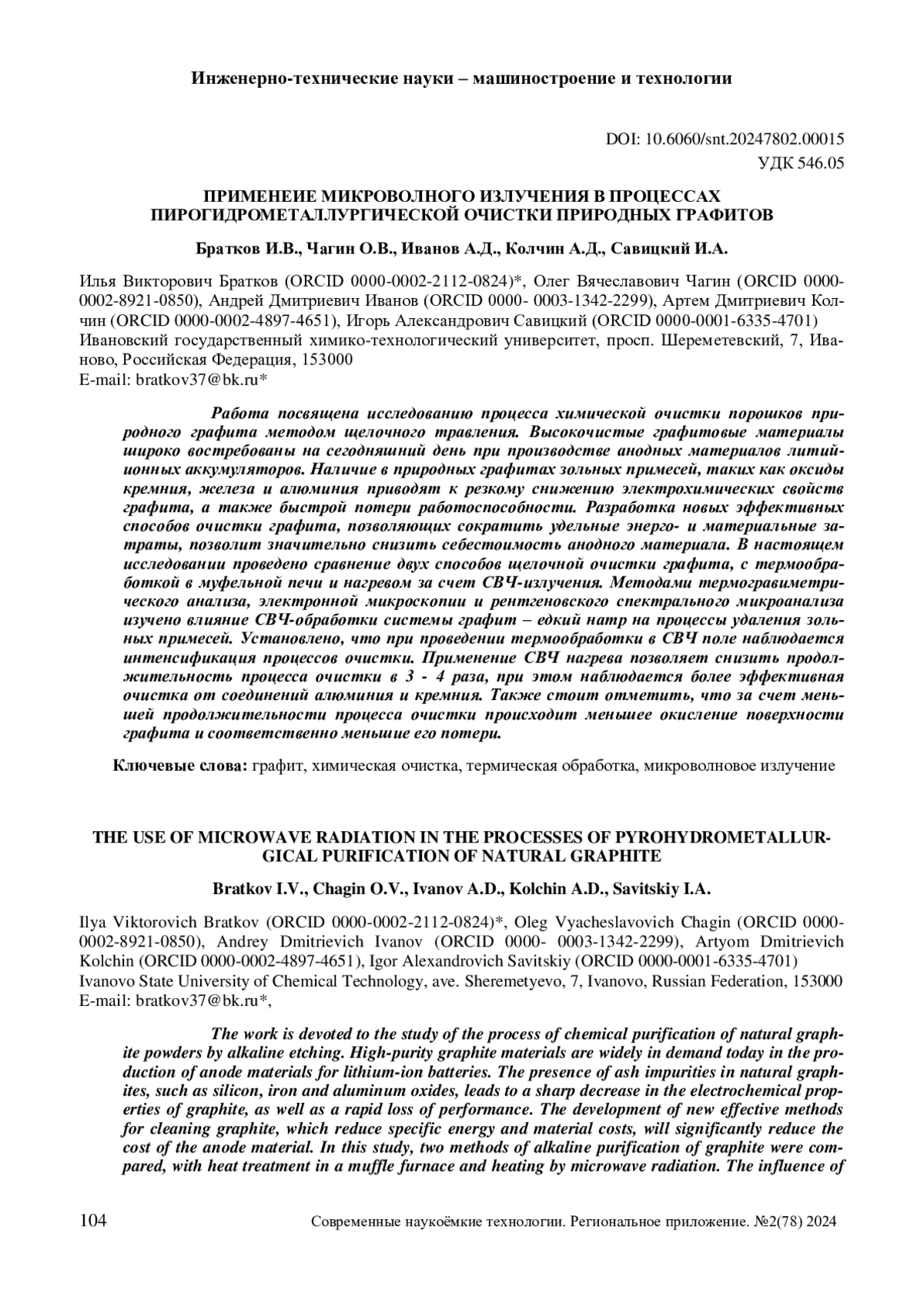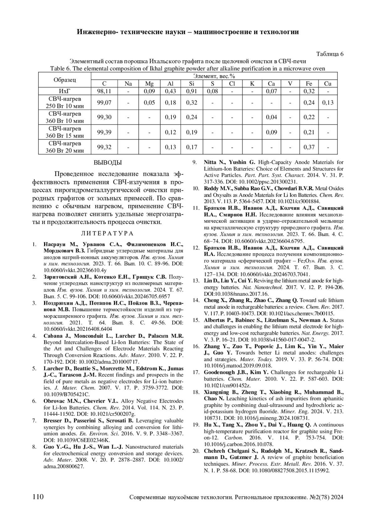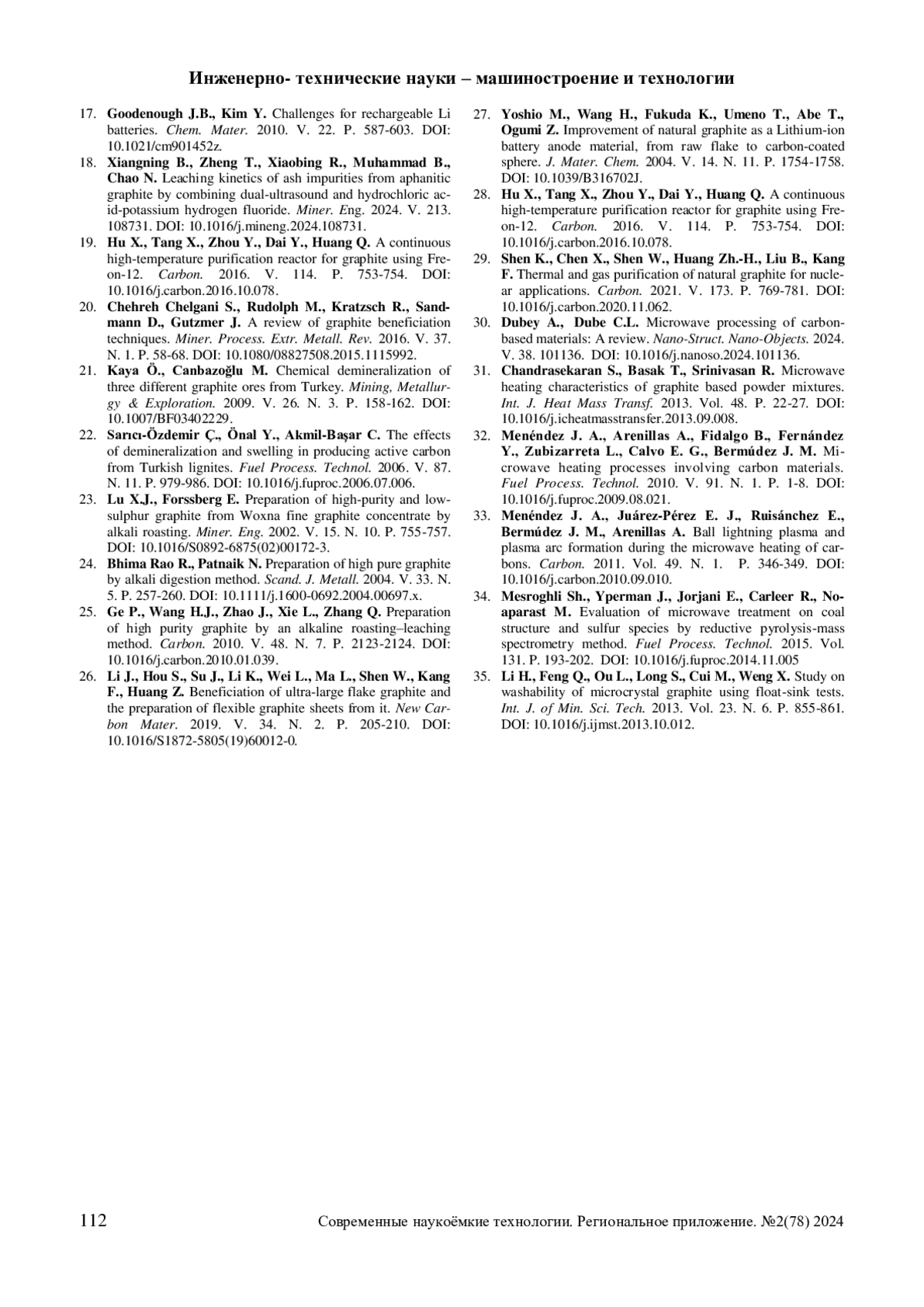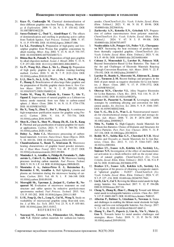 25. Ge P., Wang H.J., Zhao J., Xie L., Zhang Q. Preparation of high purity graphite by an alkaline roasting-leaching method. Carbon. 2010. V. 48. N. 7. P. 2123-2124. DOI: 10.1016/j.carbon.2010.01.039