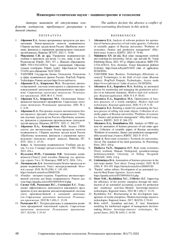 10. Лисицинская Д.А. Автоматизация бизнес-процессов на рынке недвижимости. Текст: непосредственный. Молодой ученый. 2019. № 50 (288). С. 191-193. https://moluch.ru/archive/288/65120. EDN: JKDMHR