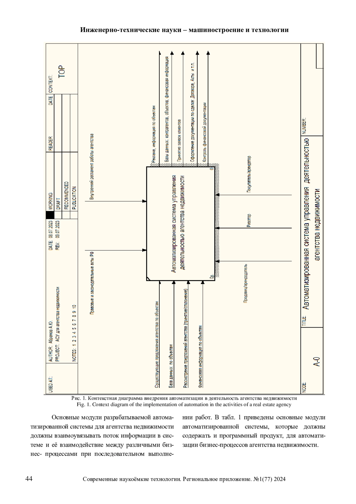 Актуальность исследования обусловлена возрастающей ролью автоматизации информационных систем во всех отраслях, в том числе и в области недвижимости. В статье рассмотрены основные современные бизнес-процессы деятельности агентства недвижимости, требующие первостепенной автоматизации для его эффективного функционирования. Описываются бизнес-процессы, которые позволят решить целый ряд задач при максимальном использовании уже имеющихся ресурсов при автоматизации бизнеса. Определены входные и выходные данные, механизм системы для описания бизнес-процессов агентства недвижимости. Построены контекстная диаграмма АСУ для агентства недвижимости и диаграмма декомпозиции системы, выполненная с использованием методологии DFD. В исследовании выделены основные модули для автоматизации бизнес-процессов агентства недвижимости. В ходе проведенного исследования выявлены причины, которые побуждают агентства недвижимости внедрять новые автоматизированные технологии и разработан алгоритм для внедрения автоматизированной информационной системы управления. Предлагаемый автором алгоритма представлен в виде блок-схемы и детально описан конкретно по каждому этапу внедрения. Сделан вывод об универсальности разработанного механизма и возможности его использования в виде методической разработки для любой организации.