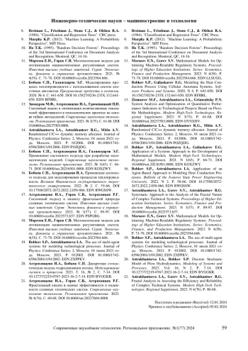 15. Бобков С.П., Астраханцева И.А., Галиаскаров Э.Г. Применение системного подхода при разработке математических моделей. Современные наукоемкие технологии. Региональное приложение. 2021. № 1(65). С. 66-71. DOI: 10.6060/snt.20216501.0008 EDN: KOXZWY