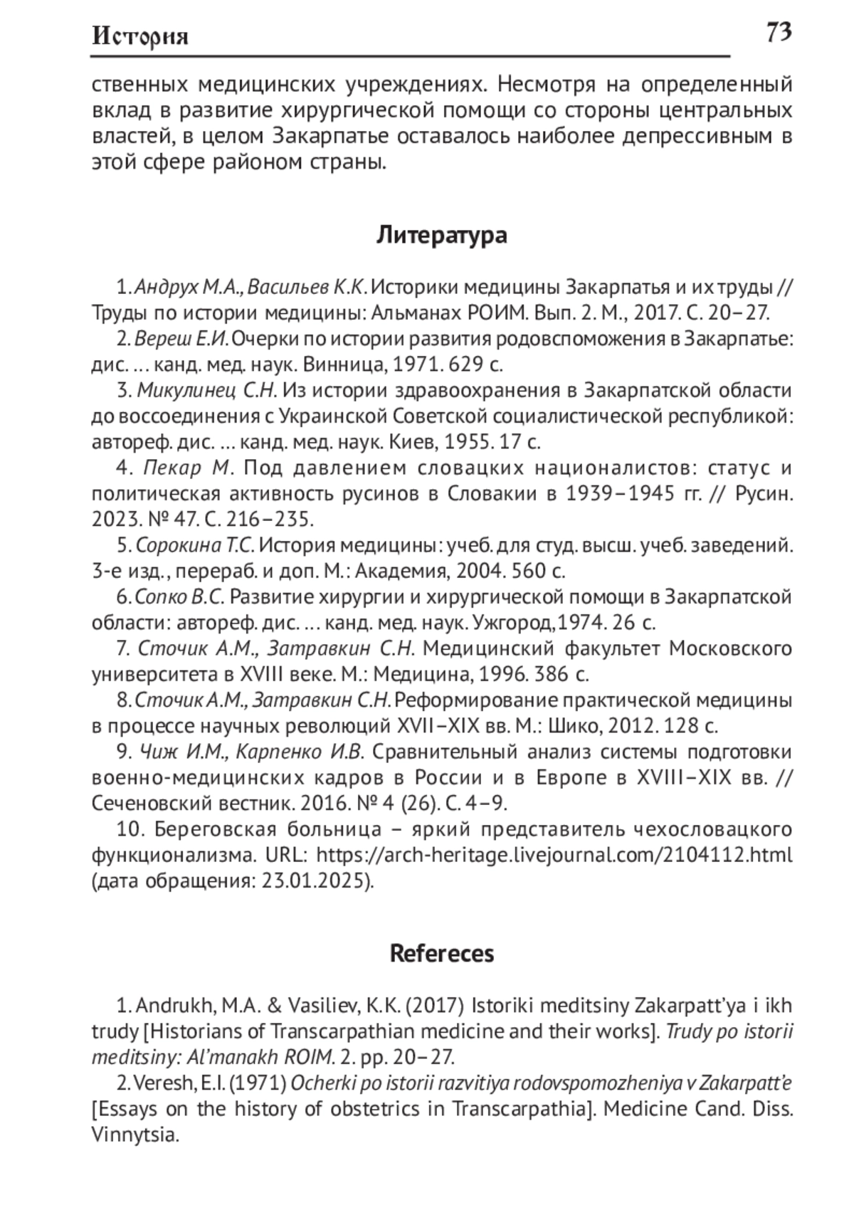 2. Вереш Е.И. Очерки по истории развития родовспоможения в Закарпатье: дис.. канд. мед. наук. Винница, 1971. 629 с.