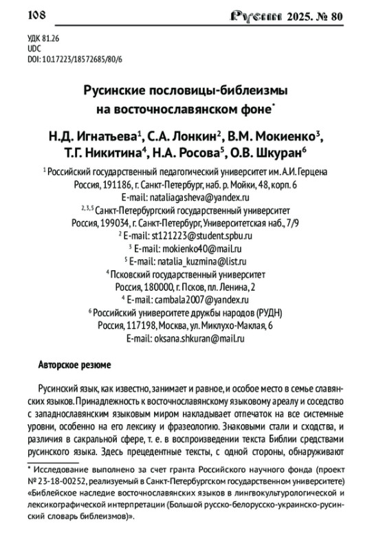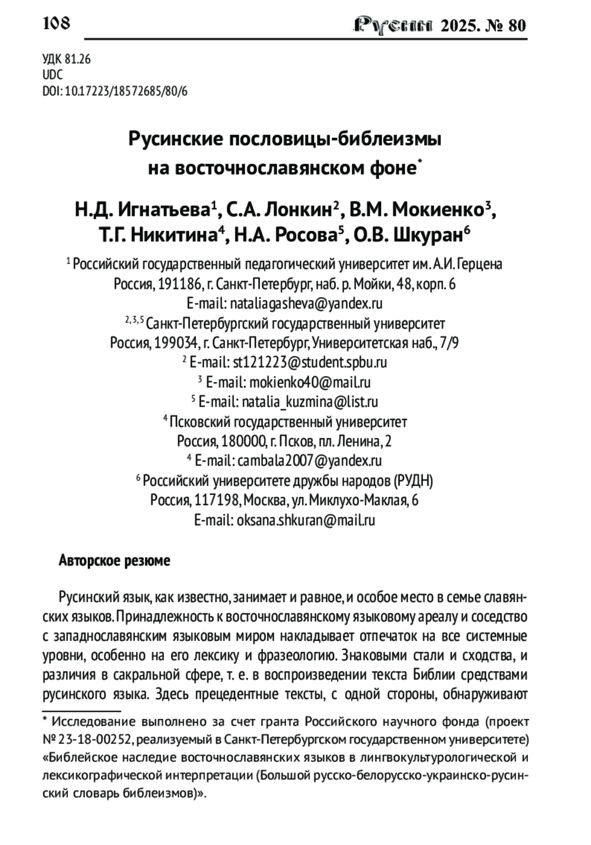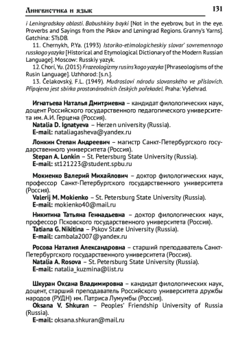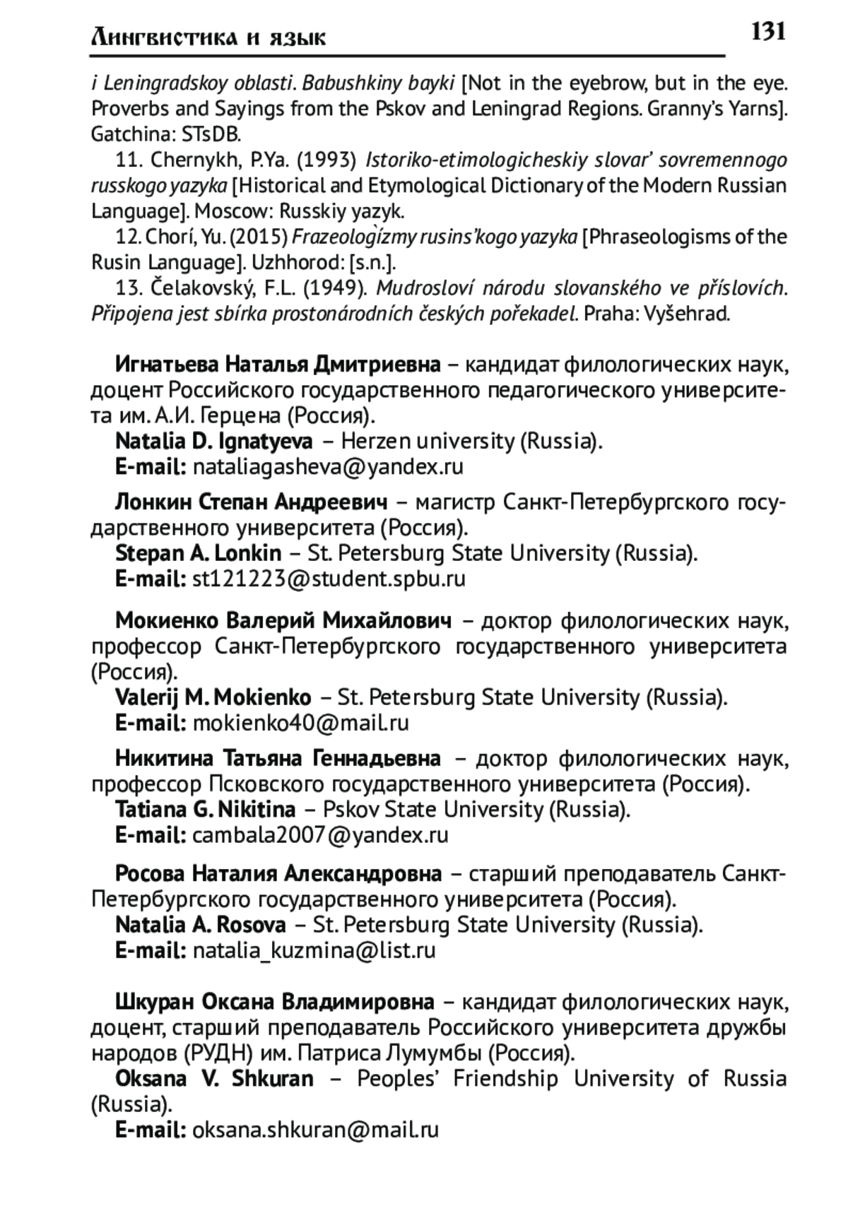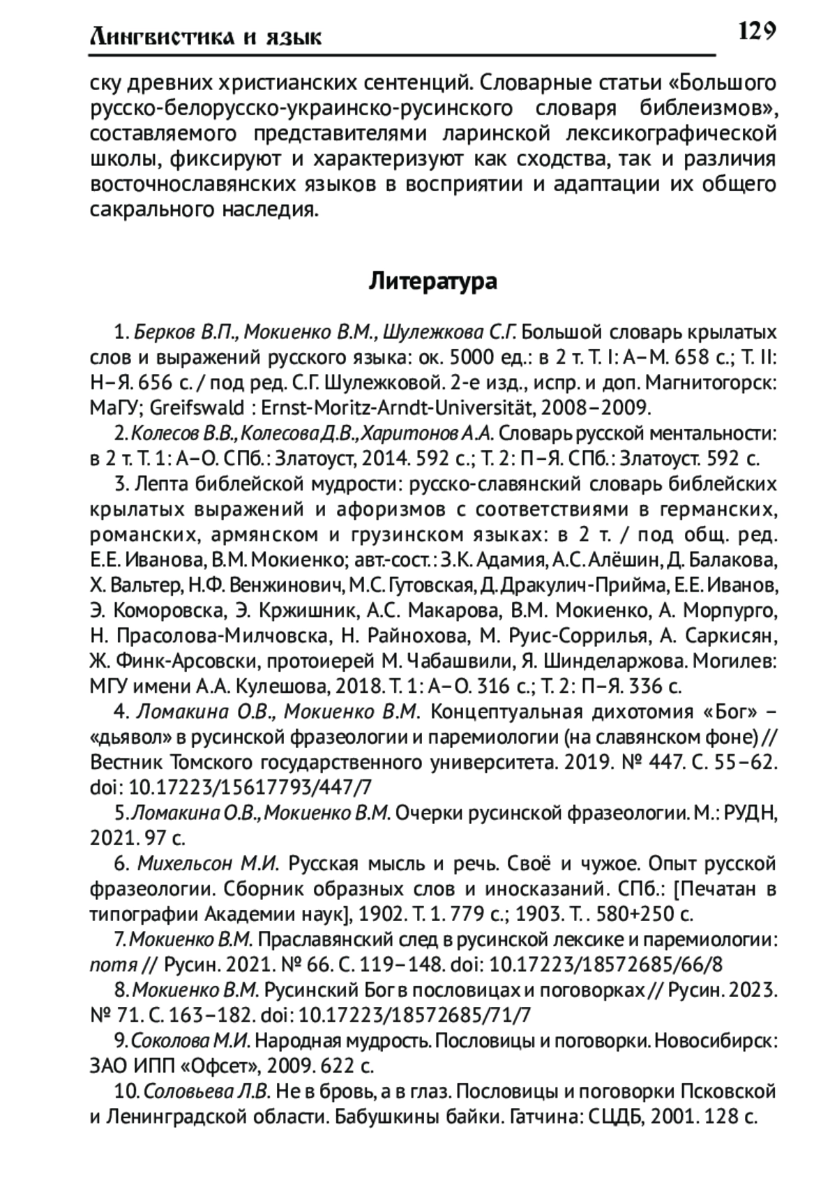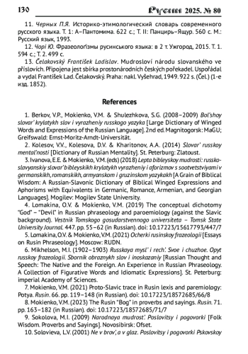 5. Ломакина О.В., Мокиенко В.М. Очерки русинской фразеологии. М.: РУДН, 2021. 97 с. EDN: TFWSLC