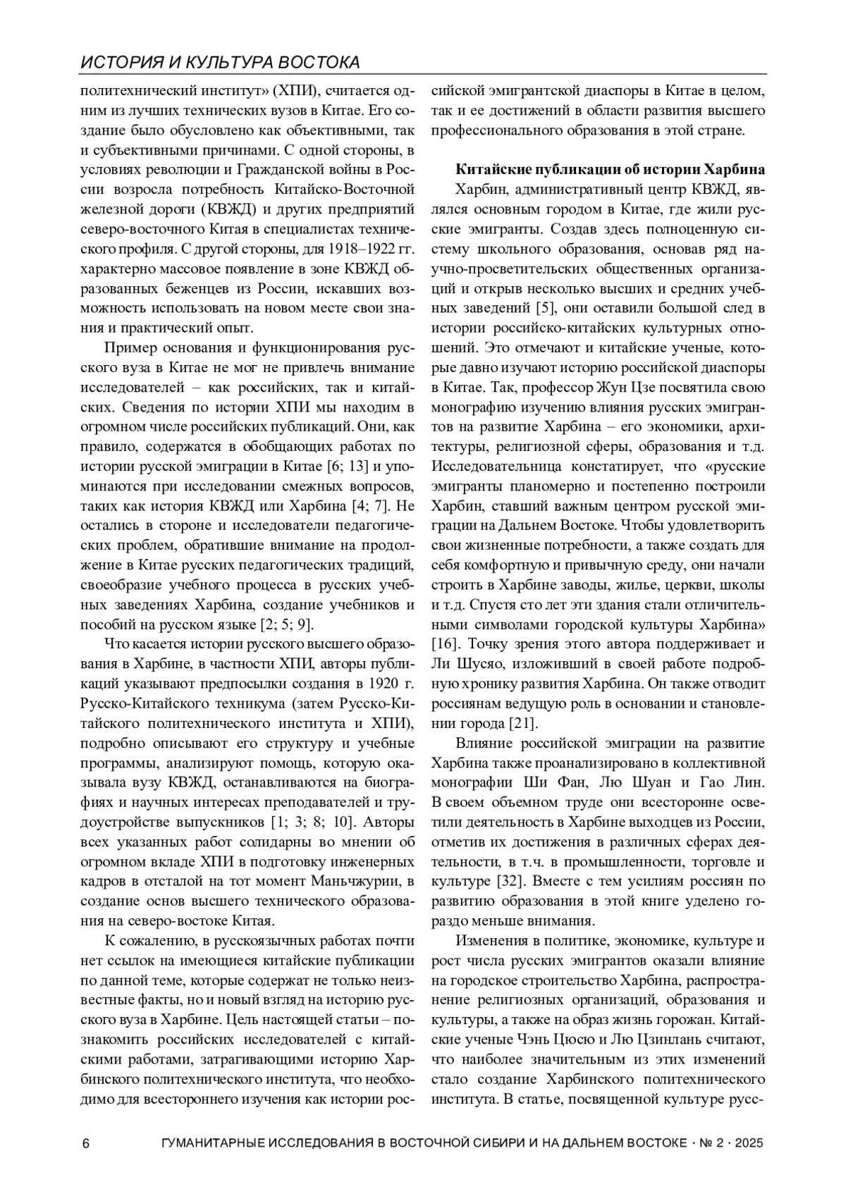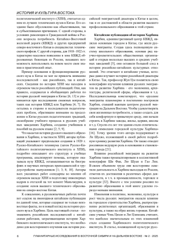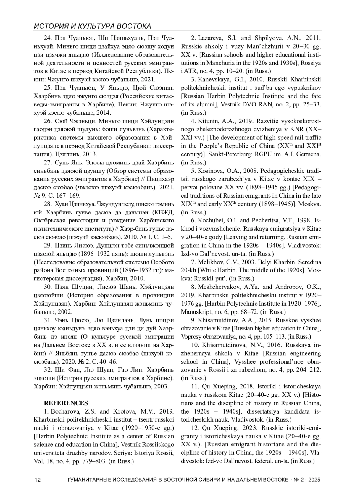 1. Бочарова З.С., Кротова М.В. Харбинский политехнический институт - центр русской науки и образования в Китае (1920-1950-е гг.) // Вестник Российского университета дружбы народов. Серия: История России. 2019. Т. 18. № 4. С. 779-803.