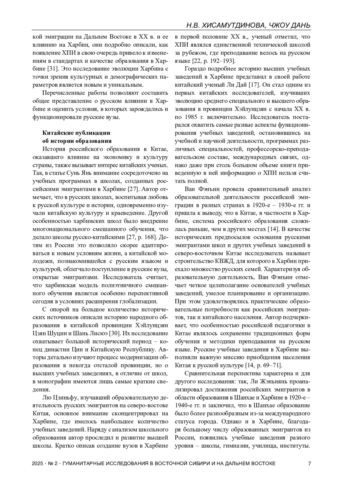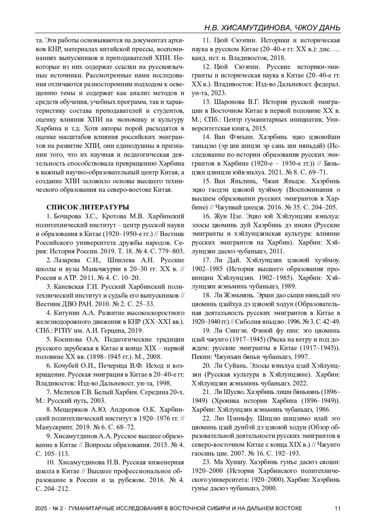 10. Хисамутдинова Н.В. Русская инженерная школа в Китае // Высшее профессиональное образование в России и за рубежом. 2016. № 4. С. 204-212.