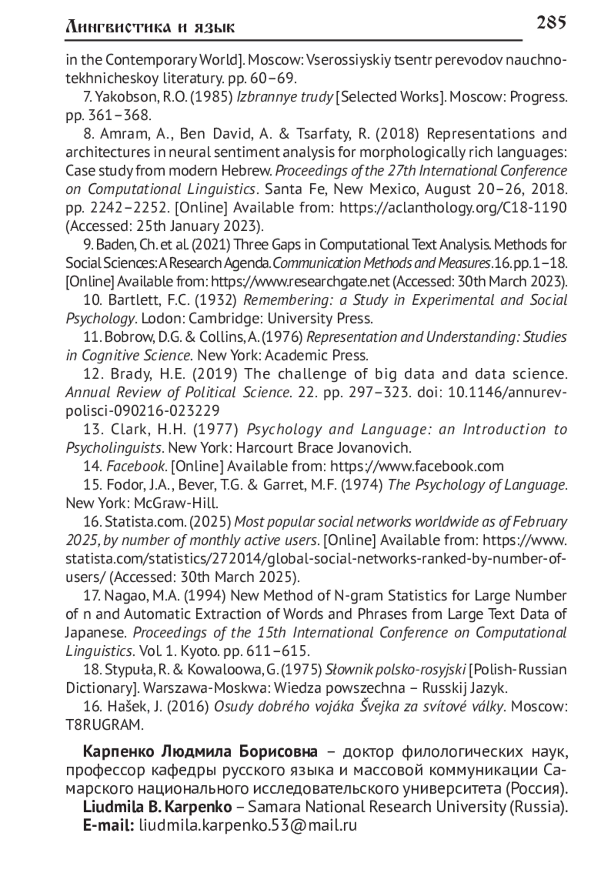 9. Baden Ch. et al. Three Gaps in Computational Text Analysis. Methods for Social Sciences: A Research Agenda // Communication Methods and Measures. 2021. № 16. Р 1-18. URL: https://www.researchgate.net (дата обращения: 30.03.2023).