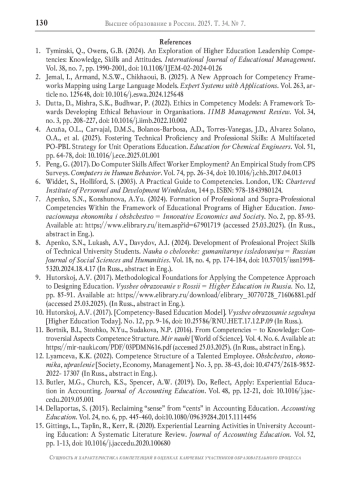 1. Tyminski Q., Owens G.B. An exploration of higher education leadership competencies: knowledge, skills and attitudes // International Journal of Educational Management. 2024. Vol. 38. No. 7. P. 1990-2001. DOI: 10.1108/IJEM-02-2024-0126