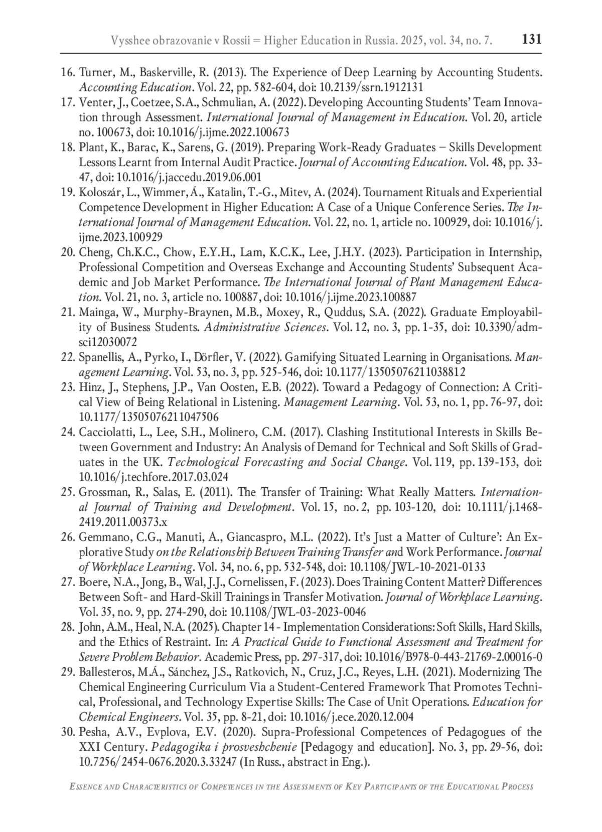 27. Boere N.A., Jong B., Wal J.J., Cornelissen F. Does training content matter? Differences between soft- and hard-skill trainings in transfer motivation // Journal of Workplace Learning. 2023. Vol. 35. No. 9. P. 274-290. DOI: 10.1108/JWL-03-2023-0046 EDN: TLWETQ