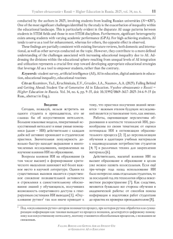 53. Алешковский И.А., Гаспаришвили А.Т., Нарбут Н.П., Крухмалева О.В., Савина Н.Е. Российские студенты о возможностях и ограничениях использования искусственного интеллекта в обучении // Вестник Российского университета дружбы народов. Серия: Социология. 2024. Т. 24. № 2. С. 335-353. DOI: 10.22363/2313-2272-2024-24-2-335-353 EDN: OAUOBU