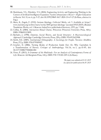 20. Шейнбаум В.С., Никольский В.С. Инженерная деятельность и инженерное мышление в контексте экспансии искусственного интеллекта // Высшее образование в России. 2024. Т. 33. № 6. С. 9-27. DOI: 10.31992/0869-3617-2024-33-6-9-27 EDN: LRFVIO