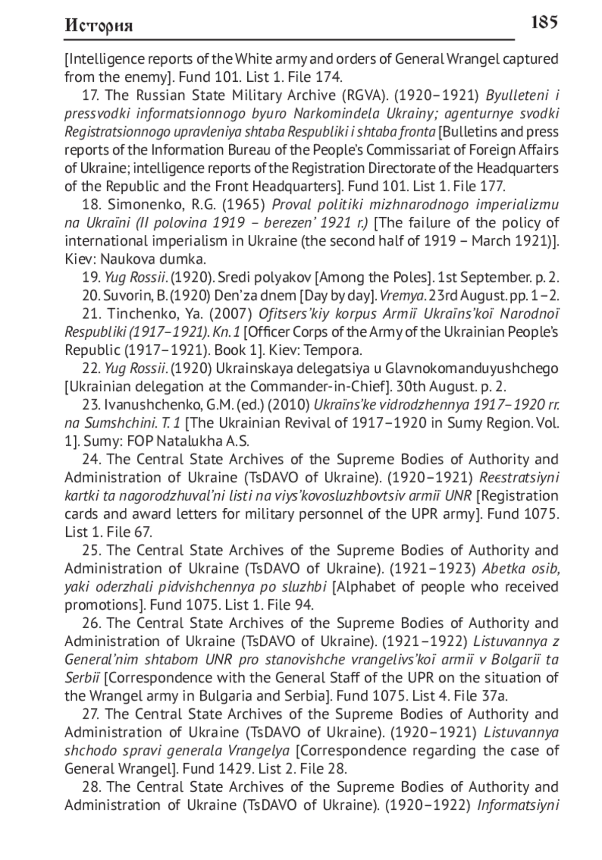 18. Симоненко Р.Г. Провал полiтики мiжнародного iмперiалiзму на Українi (II половина 1919 - березень 1921 р.). Киïв: Наукова думка, 1965. 303 с.