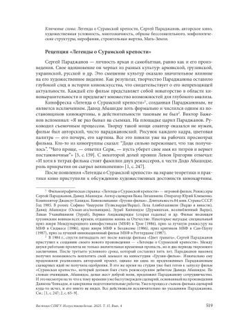 21. Абрамян, Левон. “Заметки о поэтике Параджанова”. Критика и семиотика, no. 2 (2019): 10-46. EDN: BJQFFG