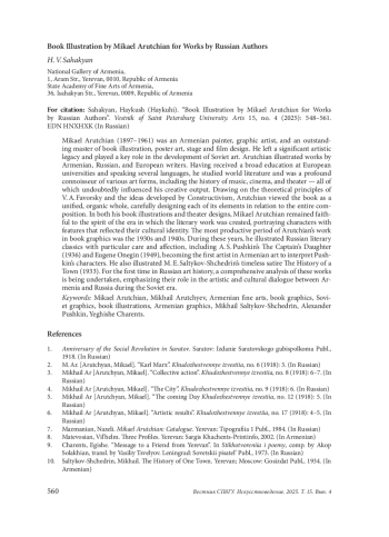 6. [Арутчьян, Микаэл] Михаил Ар. “Художественные итоги”. Художественные известия отделения искусств Саратовского совета народного образования, no. 17 (1918): 4-5.