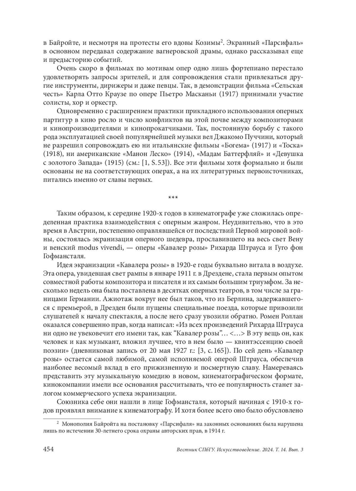 11. Asper, Helmut. “Zwischen Experiment, Film-Volksoper und Ausstattungsfilm: Die Stummfilmoper ‘Der Rosenkavalier’ von Robert Wiene”. In Späte Stummfilme: Ästhetische Innovation im Kino 1924-1930, hrsg. von Heinz-Peter Preußer, 175-201. Marburg: Schüren-Verlag, 2017. DOI: 10.5771/9783741000836-175