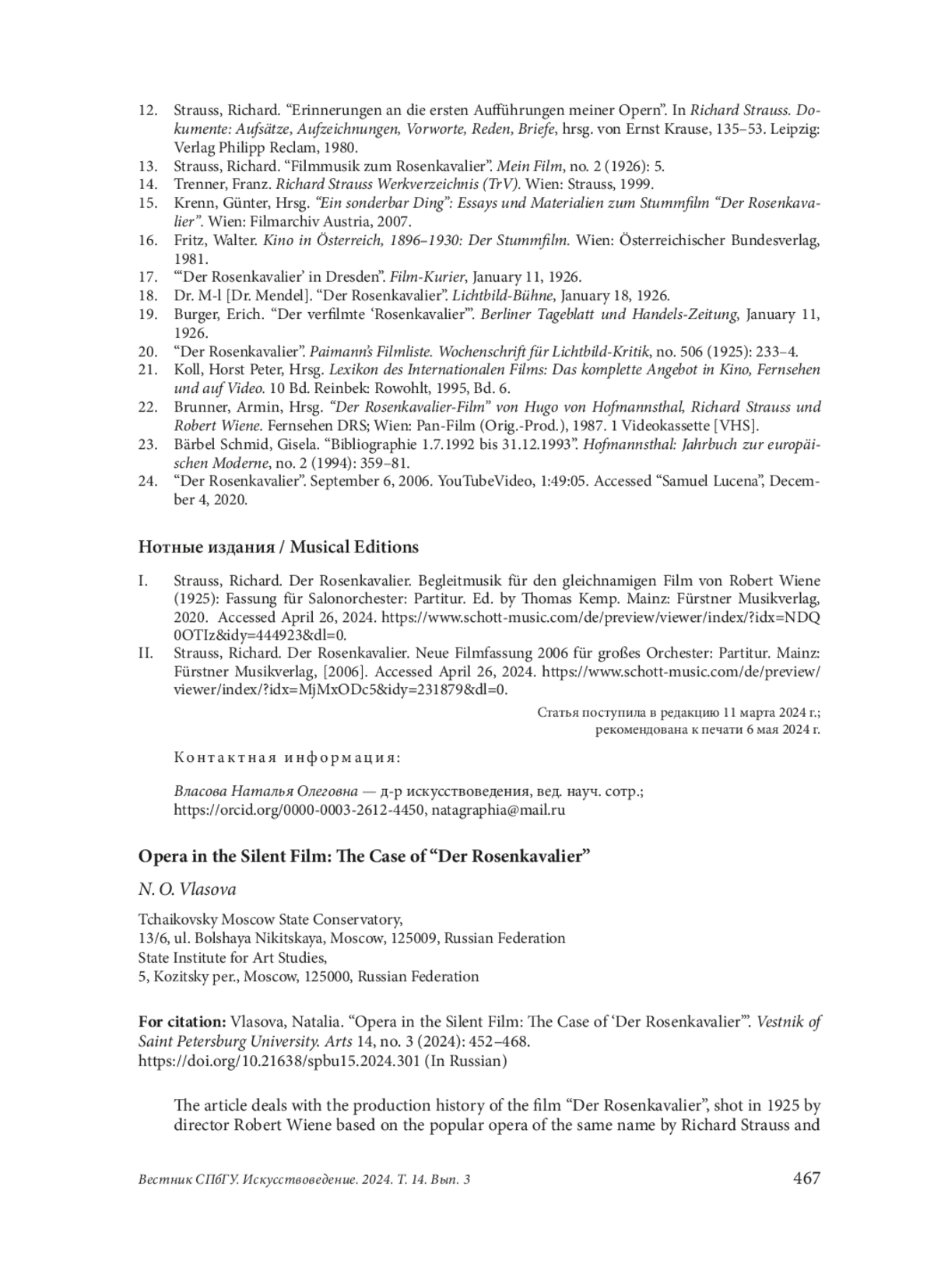 25. Strauss, Richard. Der Rosenkavalier. Begleitmusik für den gleichnamigen Film von Robert Wiene (1925): Fassung für Salonorchester: Partitur. Ed. by Thomas Kemp. Mainz: Fürstner Musikverlag, 2020. Accessed April 26, 2024. https://www.schott-music.com/de/preview/viewer/index/?idx=NDQ0OTIz&idy=444923&dl=0.