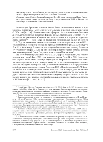 6. Ходько, Юлия. “Гравюры неизвестного московского издания Нового Завета 1712 года в контексте истории оформления кириллической книги 1710-1730-х годов”. Новое искусствознание. История, теория и философия искусства. Научно-теоретический журнал, no. 3. (2020): 134-42.