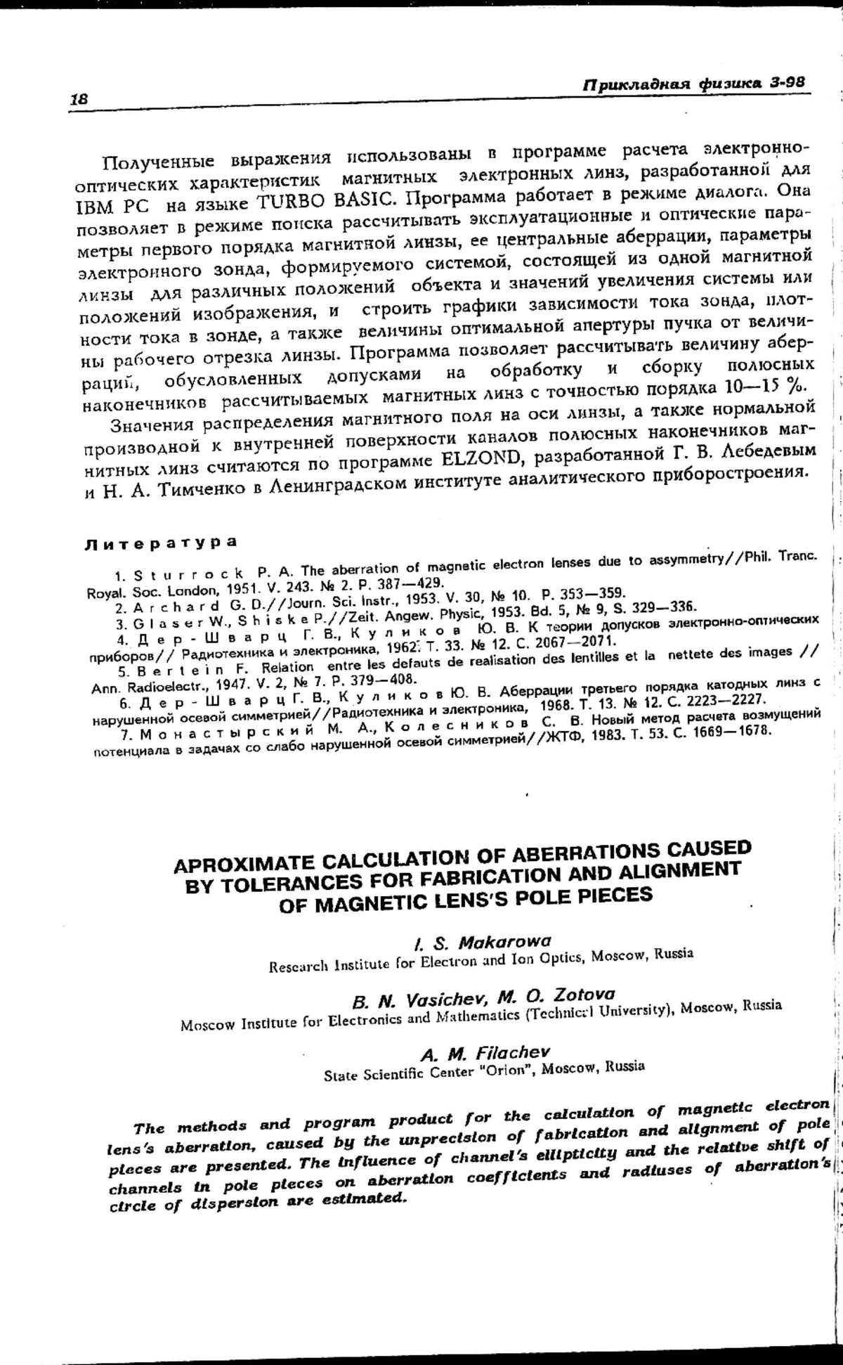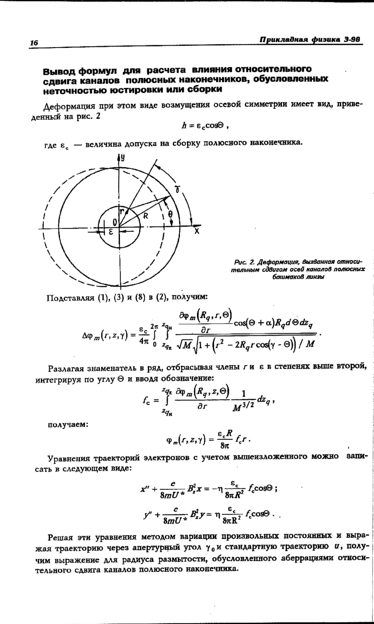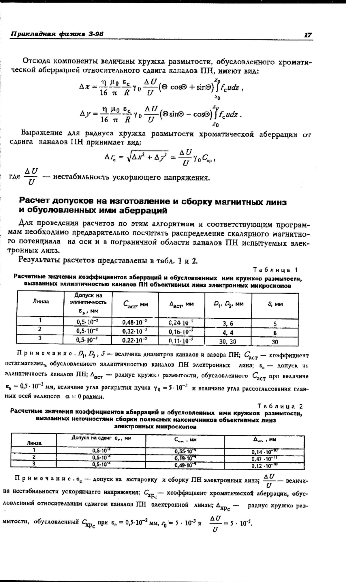 Приводится методика и программное обеспечение для расчета аберраций, обусловленных неточностью изготовления и юстировки полюсных наконечников магнитных электронных линз. Оценивается влияние эллиптичности каналов и относительного сдвига осей каналов на коэффициенты аберраций и радиусы кружков рассеяния