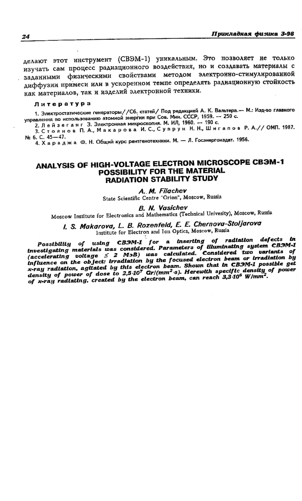 Рассмотрена возможность применения СВЭМ-1 для внесения радиационных дефектов в исследуемые материалы. Проведен расчет режимов работы осветительной системы СВЭМ-1 (ускоряющее напряжение ≤ 2 МэВ). Рассмотрены два варианта воздействия на объект: облучение сфокусированным электронным пучком или облучение рентгеновским излучением, возбуждаемым этим электронным пучком. Показано, что в СВЭМ-1 можно получить плотность мощности дозы до 2,5 · 107 Гр/(мм2 ·с). При этом удельная плотность мощности рентгеновского излучения, создаваемого электронным пучком, может достигать 3,3 · 106 Вm/мм2