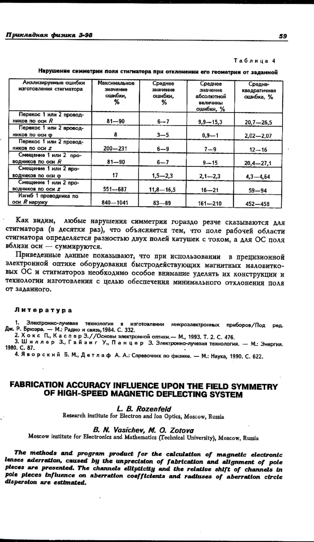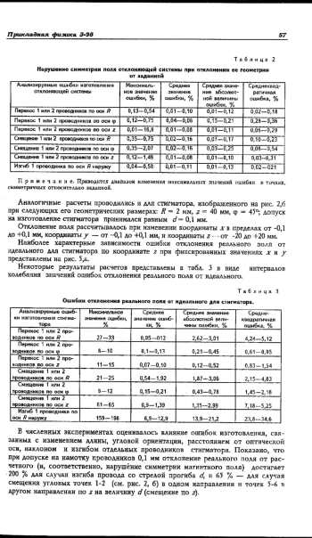 Приведенные данные показывают, что при использовании в прецизионной электронной оптике оборудования быстродействующих магнитных маловитковых ОС и стигматоров необходимо особое внимание уделять их конструкции и технологии изготовления с целью обеспечения минимального отклонения поля от заданного.