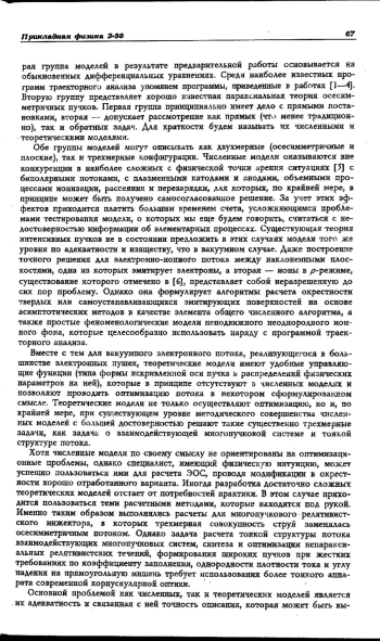 3. Потребности формирования электронных потоков с уникальными параметрами применительно к перспективным разработкам приборов плазменной СВЧ-электроники с увеличенной мощностью, ресурсом, более высокой рабочей частотой предполагают использование методов математического моделирования с учетом ионно-плазменных эффектов и тесного взаимодействия теории и практики.