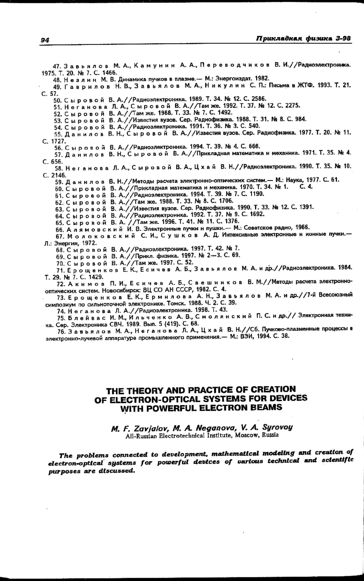 1. В научно-инженерном центре силовой электроники ВЭИ созданы и испытаны мощные пушки и инжекторы, параметры которых определяют современный уровень развития электронно-лучевых приборов, используемых в научных исследованиях и технологии.