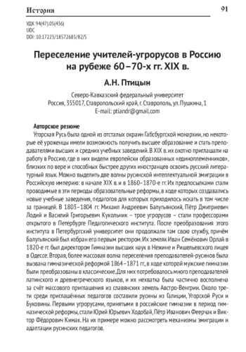 20. Птицын А.Н. Русины - директора петербургских и московских гимназий в 1870-1900-е гг. // Русин. 2023. № 71. С. 60-75. DOI: 10.17223/18572685/71/3