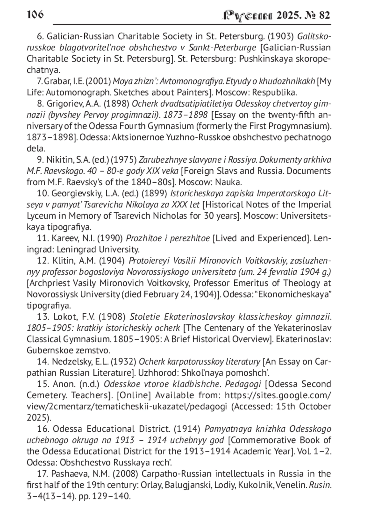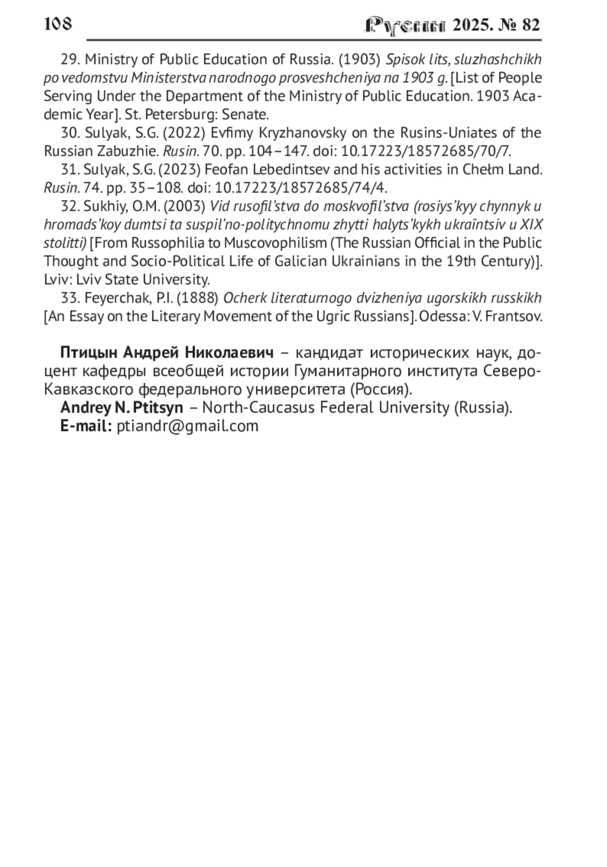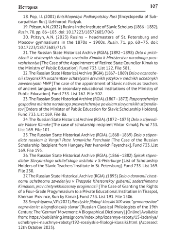 19. Птицын А.Н. Русины в Институте славянских стипендиатов (1866-1882 гг.) // Русин. 2022. № 70. С. 86-103. DOI: 10.17223/18572685/70/6