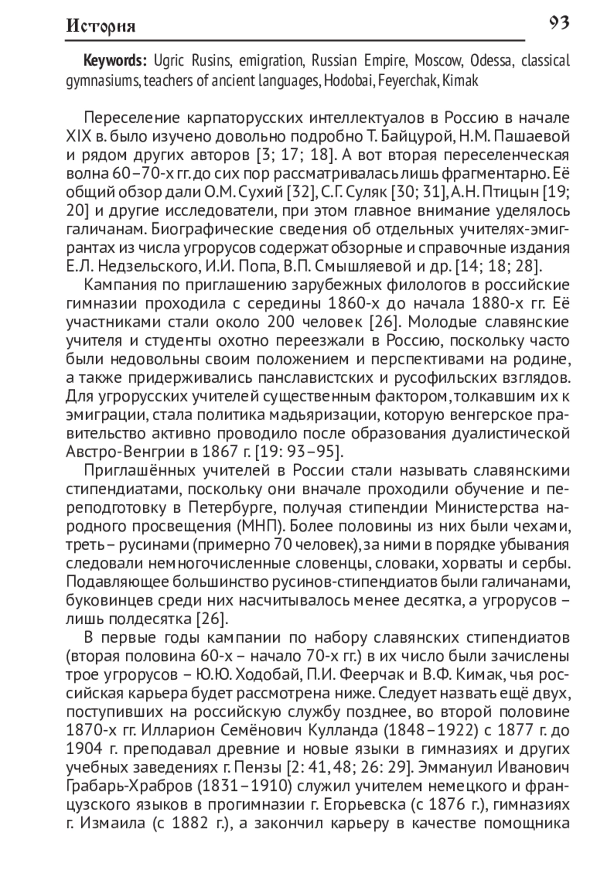 Переселение карпаторусских интеллектуалов в Россию в начале XIX в. было изучено довольно подробно Т. Байцурой, Н. М. Пашаевой и рядом других авторов [3; 17; 18].