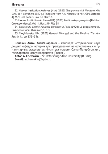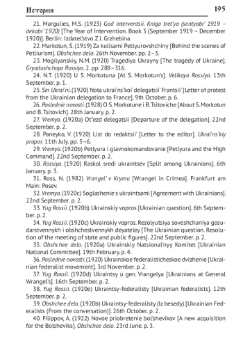 55. Moghilansky N.M. General Wrangel and the Ukraine // The New Russia. 1920. November 11. № 41. P. 332-336.