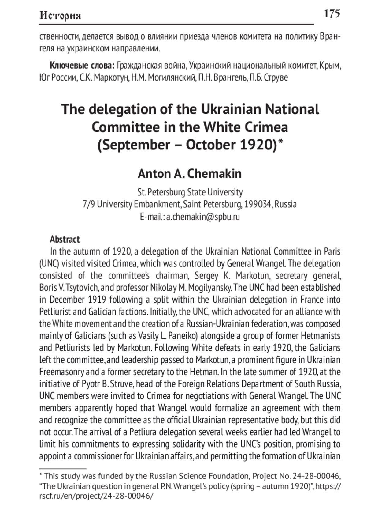 49. Чемакин А.А. Генерал Я.А. Слащёв и миссия полковника Я.Д. Ноги в Галичину (апрель - август 1920 г.) // Русин. 2024. № 77. С. 141-166. DOI: 10.17223/18572685/77/10