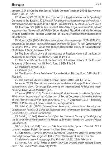 15. Морозов С.В. К вопросу о несостоявшейся превентивной войне маршала Пилсудского против Германии в 1933 г. // Вестник Томского государственного университета. 2021. № 471. С. 160-169. DOI: 10.17223/15617793/471/19