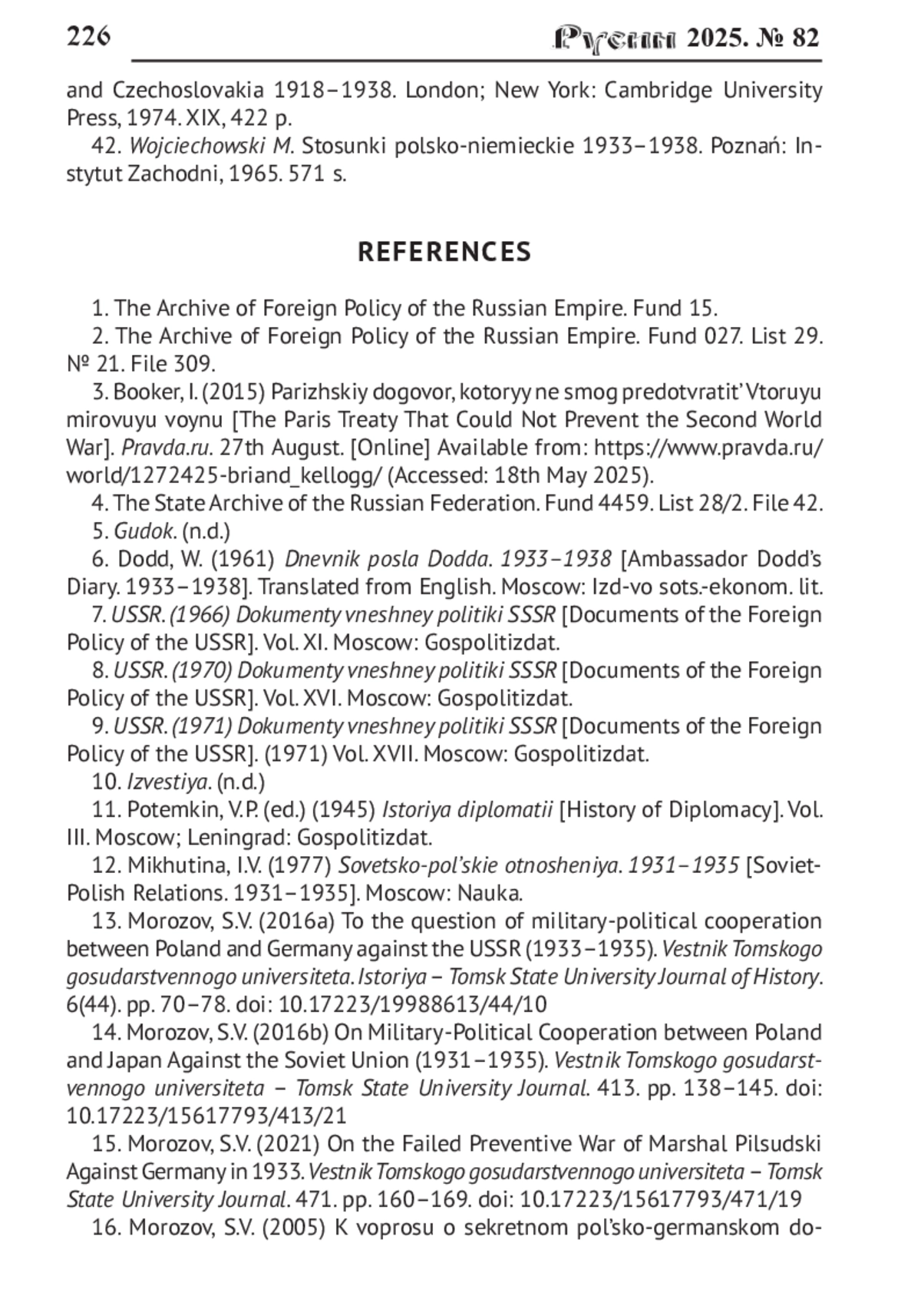 16. Морозов С.В. К вопросу о секретном польско-германском договоре 1934 г. // Славяноведение. 2005. № 5. С. 35-53.