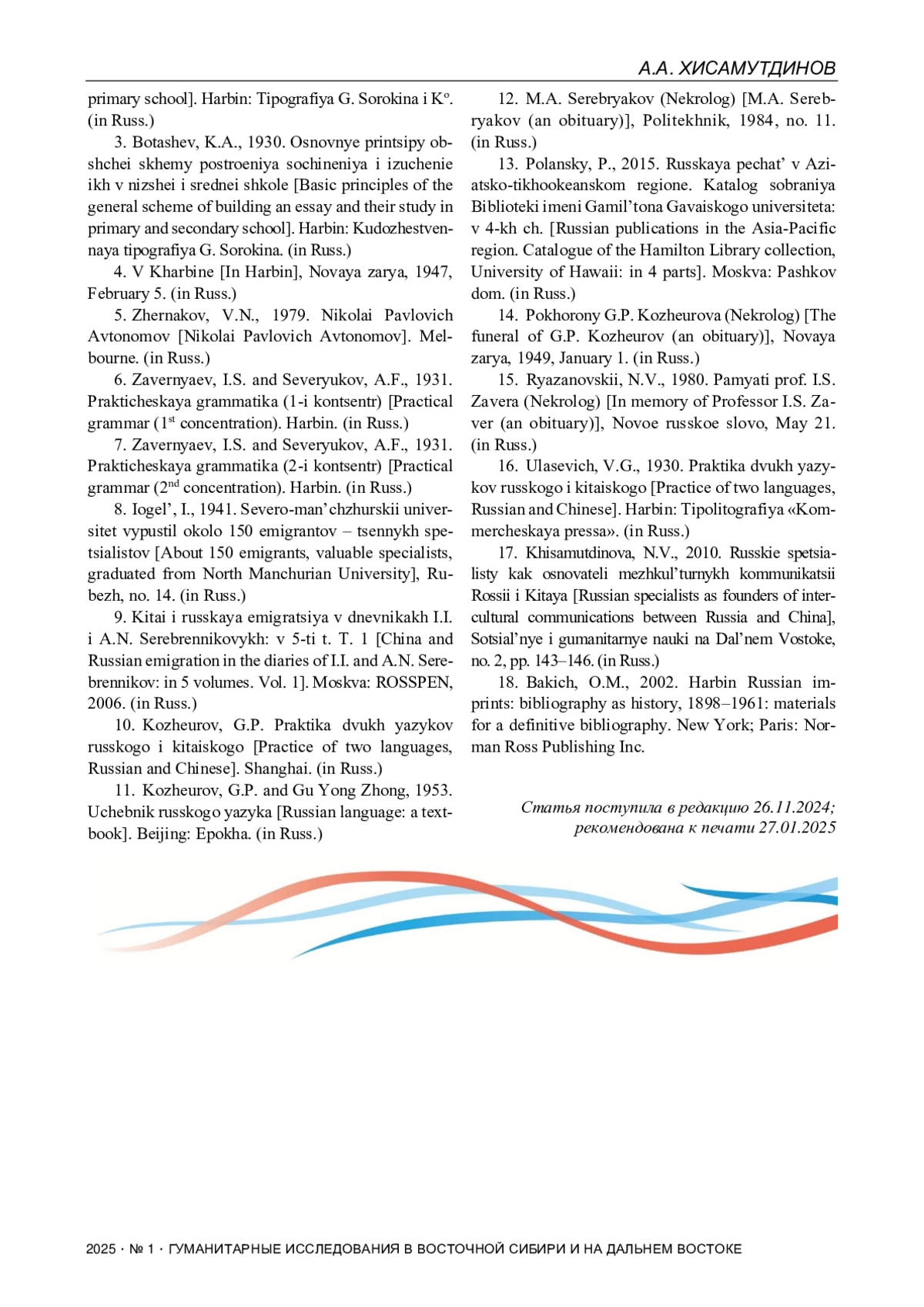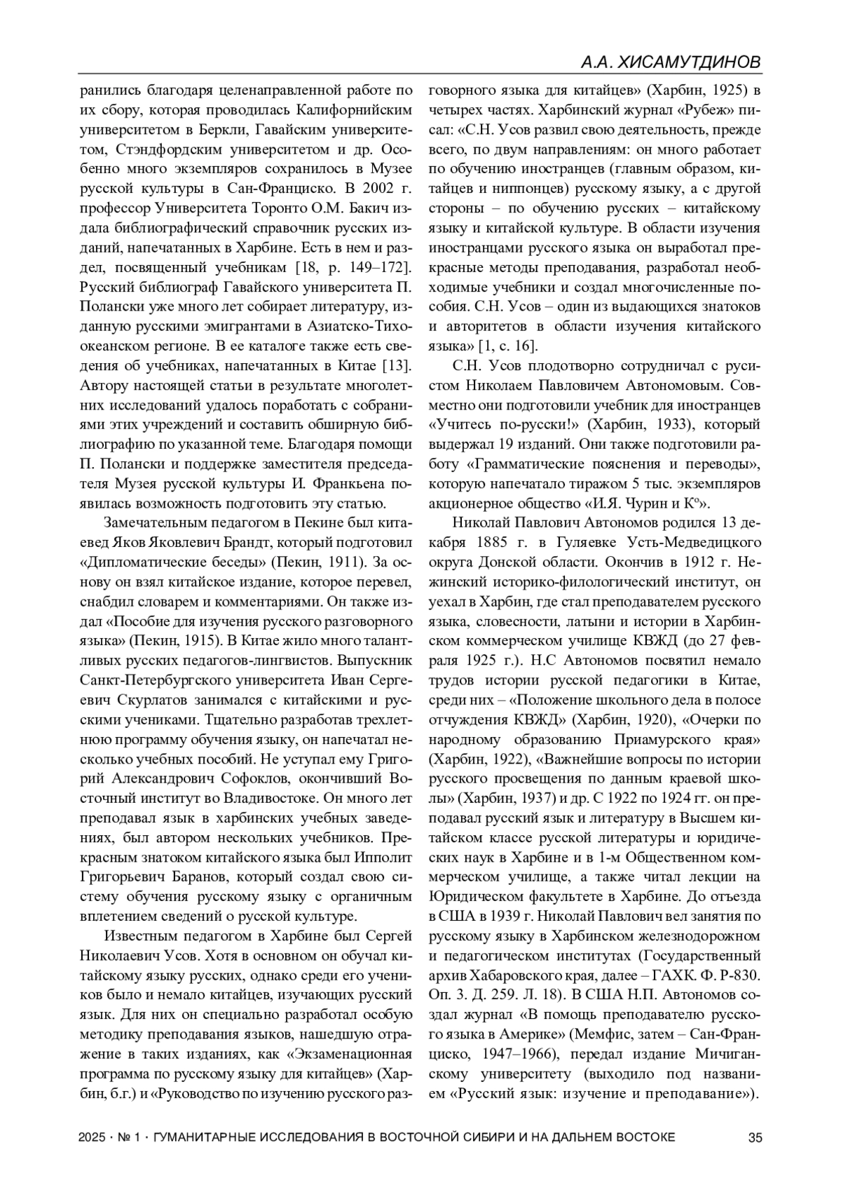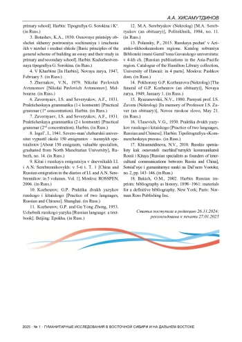 17. Хисамутдинова Н.В. Русские специалисты как основатели межкультурных коммуникаций России и Китая // Социальные и гуманитарные науки на Дальнем Востоке. 2010. № 2. С. 143-146.