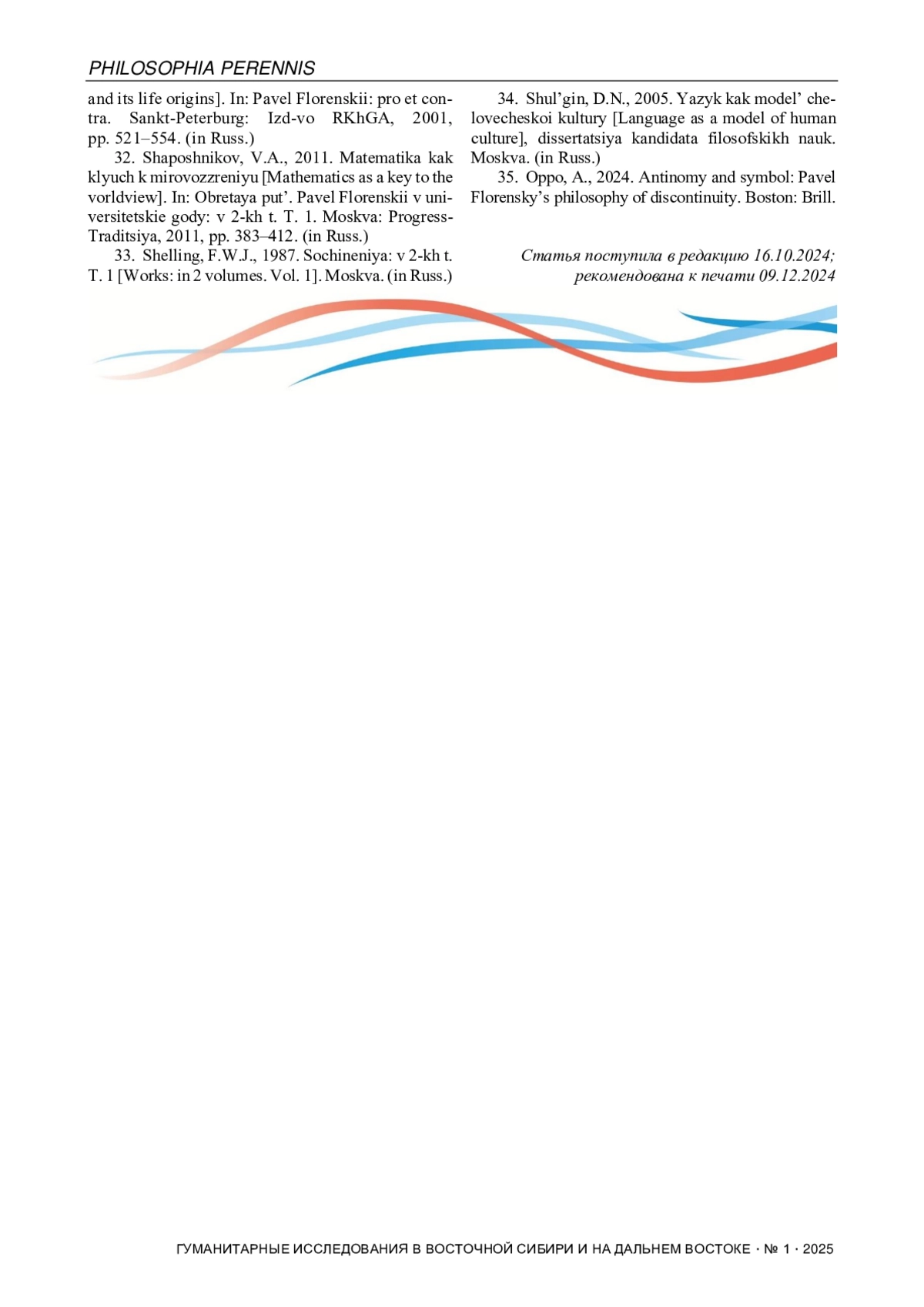 35. Oppo, A., 2024. Antinomy and symbol: Pavel Florensky’s philosophy of discontinuity. Boston: Brill.