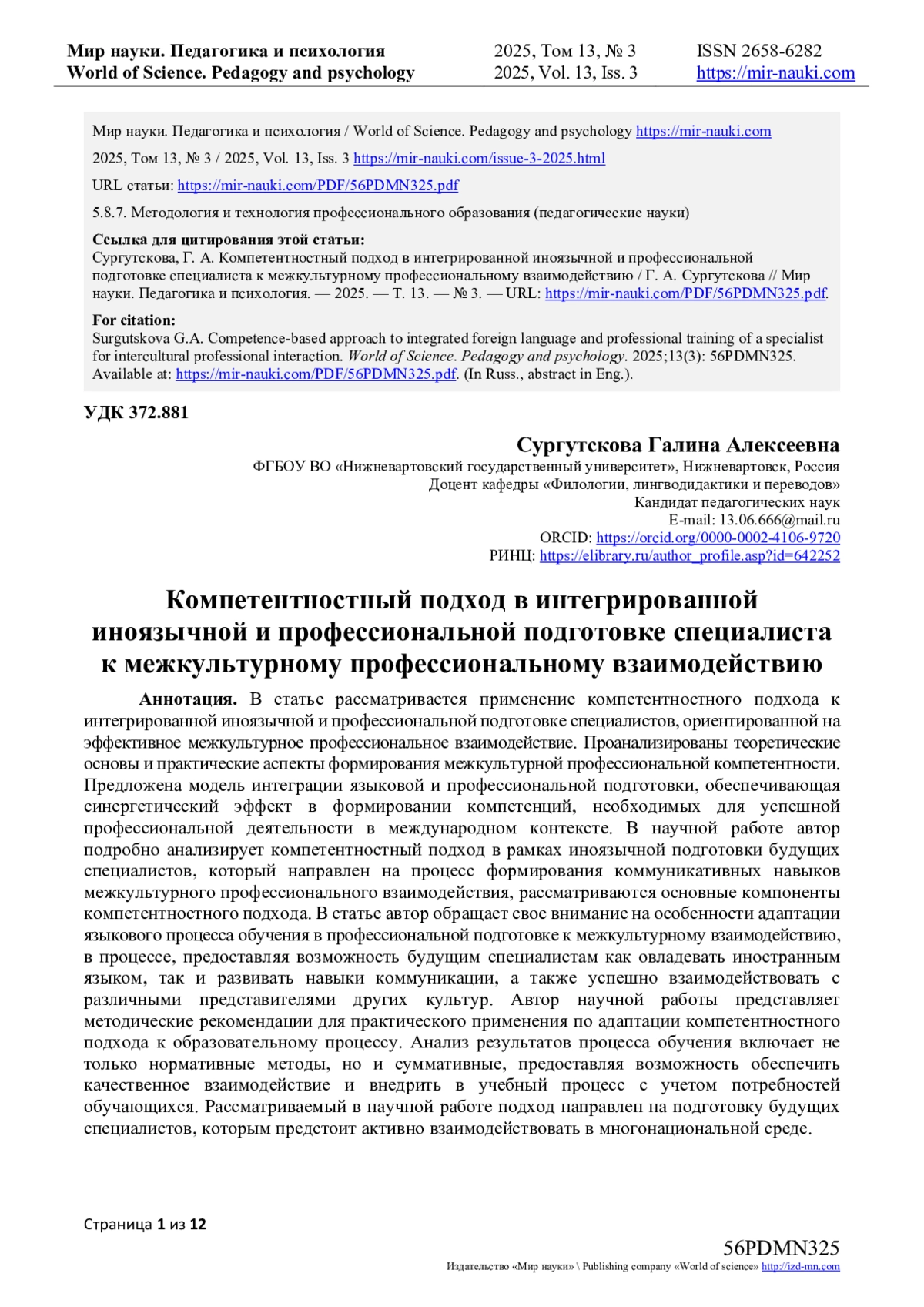 3. Сургутскова, Г.А. Теоретические положения интегрированного подхода к межкультурному профессиональному взаимодействию / Г.А. Сургутскова, Ю.В. Сорока // Мир науки. Педагогика и психология. - 2022. - Т. 10, № 4. - URL: https://mir-nauki.com/PDF/31PDMN422.pdf. EDN: SJJXSW