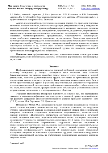 1. Поздняков, В.М. Особенности профессионального выгорания у сотрудников уголовно-исполнительной системы на различных этапах прохождения службы / В.М. Поздняков, М.А. Черкасова // Прикладная юридическая психология. - 2013. - № 1. - С. 22-31. EDN: QBDLCB