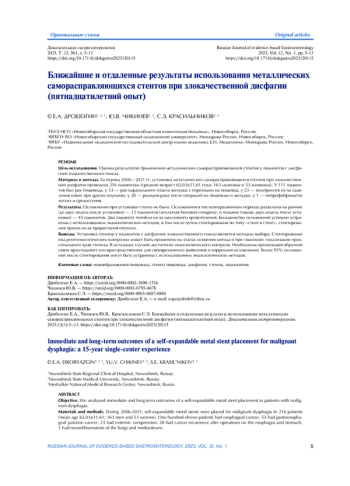 8. Аванесян А.А., Попова Н.С., Мирошников Б.И., Моисеенко В.М. Стентирование пищевода при опухолевых стенозах (опыт трехлетней работы). Вестник хирургии им. И.И. Грекова. 2019;178(6):23-28.