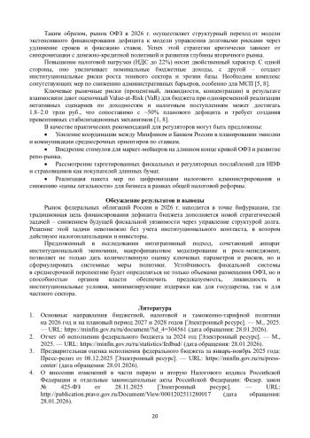15. Петров В. С. Анализ бюджета России на 2026 год: риски и возможности [Электронный ресурс] // VC.ru. - 2025. - 1 дек. - URL: https://vc.ru/money/2625661-byudzhet-rossii-na-2026-god (дата обращения: 28.01.2026).