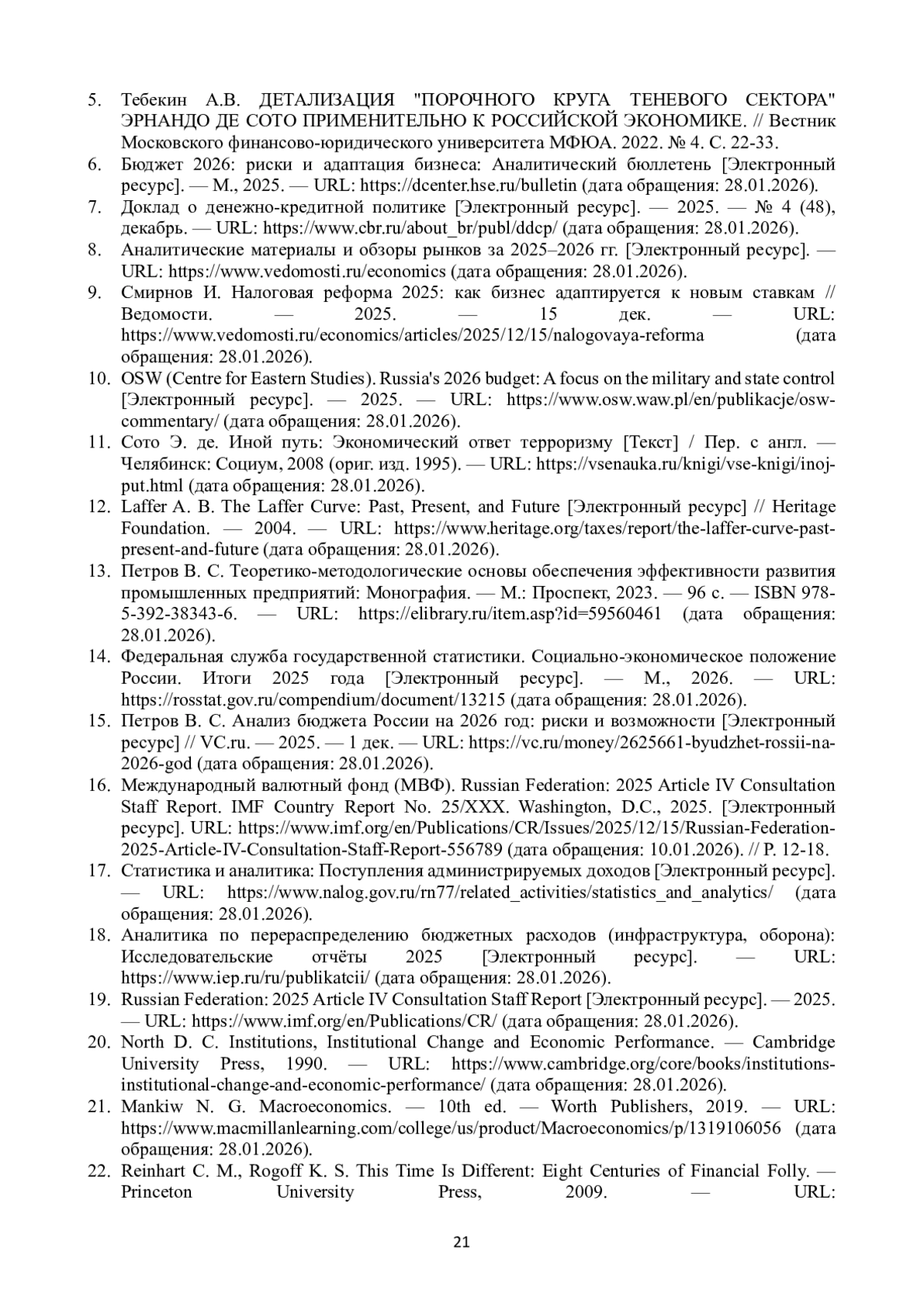 21. Mankiw N. G. Macroeconomics. - 10th ed. - Worth Publishers, 2019. - URL: https://www.macmillanlearning.com/college/us/product/Macroeconomics/p/1319106056 (дата обращения: 28.01.2026).