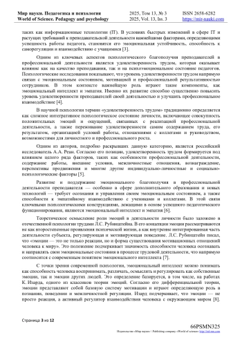 3. Халудорова, Л.Е. Развитие эмоционального интеллекта педагога в условиях дополнительного профессионального образования / Л.Е. Халудорова // Crede Experto: транспорт, общество, образование, язык. - 2024. - № 4. - С. 209-216 - URL: item.asp?id=75208299. DOI: 10.51955/2312-1327_2024_4_209 EDN: PZYTHA