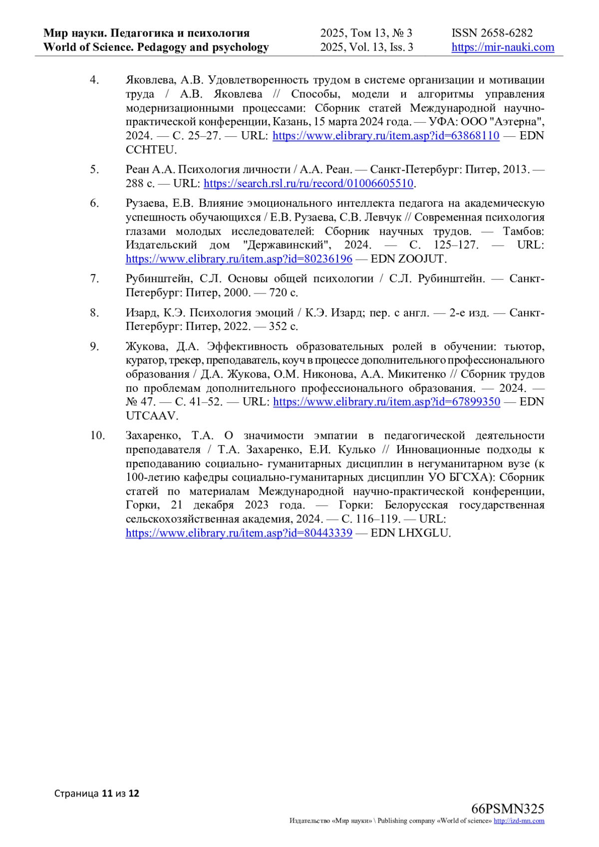 4. Яковлева, А.В. Удовлетворенность трудом в системе организации и мотивации труда / А.В. Яковлева // Способы, модели и алгоритмы управления модернизационными процессами: Сборник статей Международной научно-практической конференции, Казань, 15 марта 2024 года. - УФА: ООО “Аэтерна”, 2024. - С. 25-27. - URL: item.asp?id=63868110. EDN: CCHTEU