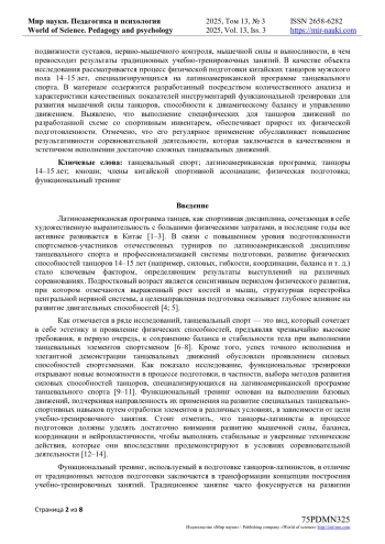 13. Жигайлова, Л.В. Специальная физическая подготовка в танцевальном спорте / Л.В. Жигайлова, И.В. Тихонова, А.А. Пастухов, П.Ю. Жигайлов // Глобус. - 2020. - № 2(48). - URL: https://cyberleninka.ru/article/n/spetsialnaya-fizicheskaya-podgotovka-v-tantsevalnom-sporte (дата обращения: 12.06.2025).