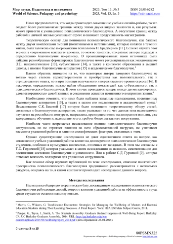 Методы и организация исследования: авторами применены методы анализа и синтеза научной литературы по теме исследования. Для обзора были выбраны работы китайских, европейских (включая крупные выборки финских, бельгийских, нидерландских респондентов), австралийских, канадских, казахстанских и отечественных исследователей. Произведена группировка материала, включающего результаты наблюдений, теоретических и эмпирических исследований за 2019-2024 годы, для анализа и сравнения современных подходов ученых со всего мира к изучению проблемы.