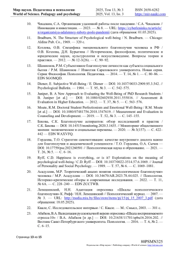 21. Лепешинский, Н.Н. Адаптация опросника “Шкалы психологического благополучия” К. Рифф / Н.Н. Лепешинский // Психологический журнал. - 2007. - № 3. - URL: http://media.miu.by/files/store/items/pj/15/pj_15_2007_3.pdf (дата обращения: 18.05.2025).