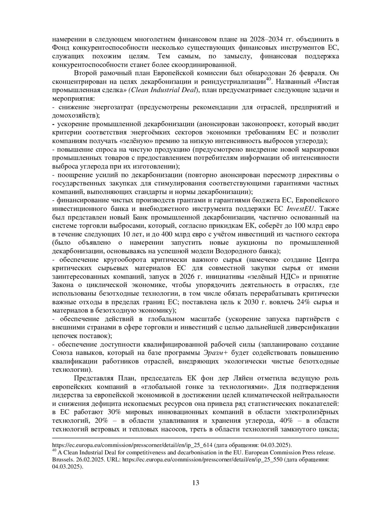 4. A Clean Industrial Deal for competitiveness and decarbonisation in the EU. European Commission Press release. Brussels. 26.02.2025.