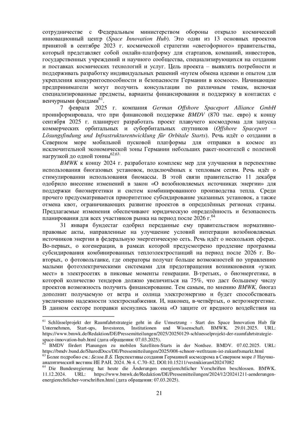 15. Белов В.Б. Перспективы создания Германией космодрома в Северном море // Научно-аналитический вестник ИЕ РАН. 2024. № 4.