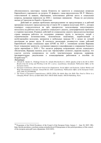 2 декабря министры занятости и социальных дел ЕС определили приоритеты в области занятости и социальной политики на европейский семестр 2025 г. и в контексте Плана действий по европейской опоре социальных прав (EPSR). Они подчеркнули важность создания условий для профессиональной переподготовки и повышения квалификации на протяжении всей жизни, а также для оптимального использования потенциала рынка труда (мобилизации неиспользованного трудового потенциала), прежде всего в отношении молодежи, пожилых людей и экономически неактивного населения. Министры отметили необходимость