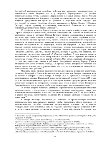 Зимой 2024-2025 гг. в профильных структурах Евросоюза продолжились дискуссии о нововведениях в рамках утвержденного весной Пакта о миграции и убежище и перспективах его реализации