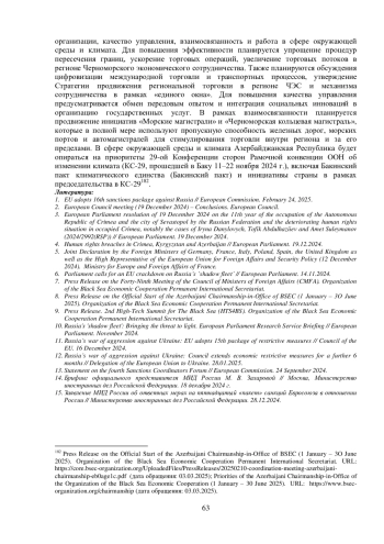 8. Press Release on the Official Start of the Azerbaijani Chairmanship-in-Office of BSEC (1 January - 3O June 2025). Organization of the Black Sea Economic Cooperation Permanent International Secretariat.