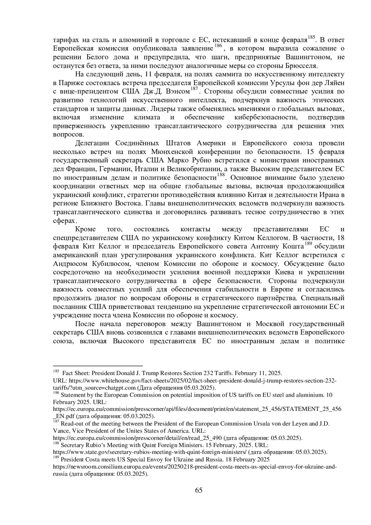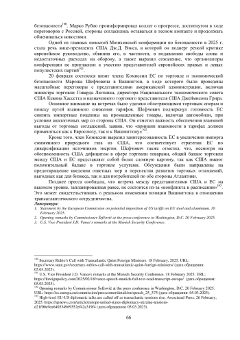 В конце 2024 г. отношения между США и ЕС развивались с меньшей интенсивностью, так как в США продолжался процесс передачи власти избранному президенту. После ноябрьских выборов начался транзит, который завершился лишь к 20 января 2025 г., когда Дональд Трамп официально приступил к полномочиям президента США.
