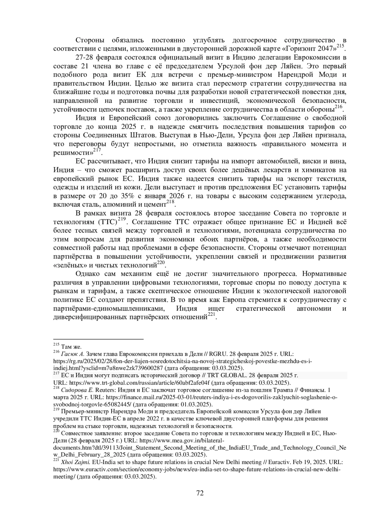 12. Гасюк А. Зачем глава Еврокомиссии приехала в Дели // RGRU. 28 февраля 2025 г.